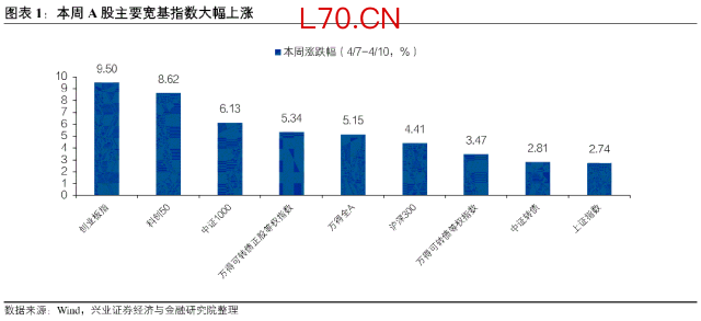 本周随着外部扰动边际减弱,权益市场风偏修复,主要宽基指数大幅上涨。