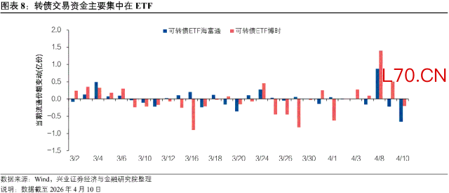 当前交易盘资金主要集中在ETF,交易性资金通过ETF的申赎来获取波段收益。年初以来,两只可转债ETF的份额快速从45亿份抬升至55亿份左右,即使3月以来有一定赎回压力,但ETF无疑是转债一季度最重要的增量资金。而随着指数化加速以及筹码更加集中,ETF以更低成本、更高流动性和更强可替代性承接了机构与绝对收益资金的波段需求。