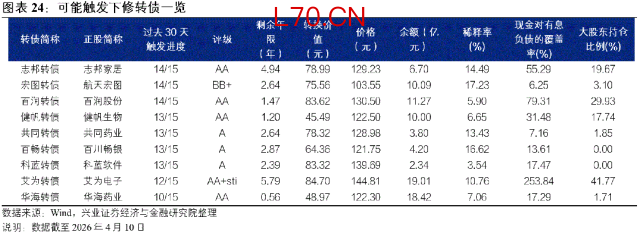 4)部分中低价品种在化债背景下仍有较好的收益空间。部分剩余期限较短的偏债品种,可能有较强的化债和转股诉求,目前多数低价品种信用风险可控,而上行弹性,需要把握一些条款博弈的机会。