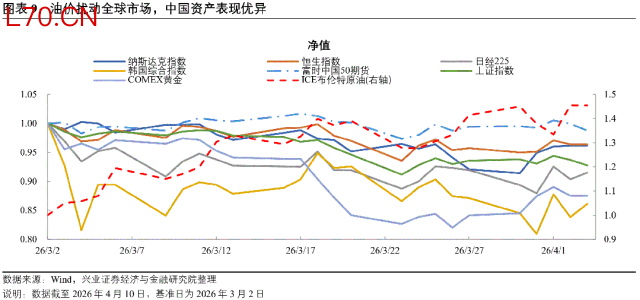 随着中东地区冲突边际变化显现,美伊谈判开启,A股有望继续修复。从本轮美伊以冲突加剧以来全球各类风险资产表现看,A股市场仍反映出较强的韧性,表现明显优于港股、日韩、美国等市场,国内政策的稳定性以及产业链的完备性,是中国资产在本轮冲击中抗风险的核心因素。
