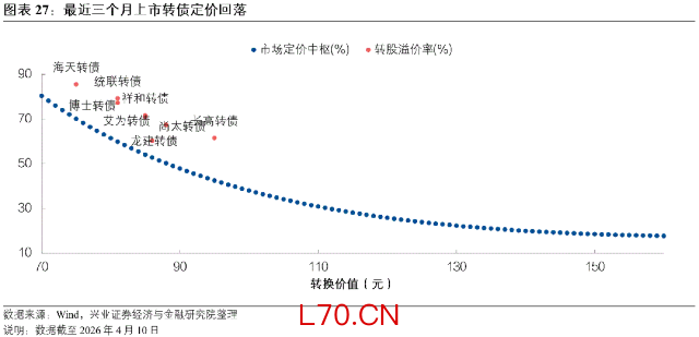 部分低资质转债的压力也逐渐传导至偏债品种。一方面,4月市场进入财报季,市场定价的主要矛盾从此前的估值扩张向盈利驱动切换,具备基本面确定性与景气度的科技成长品种价格普遍较高,而中低价转债大多集中在传统板块,短期业绩表现仍然承压,难以受到资金青睐;同时4月开始陆续有评级披露,部分低资质品种如龙大转债等有评级下调压力,叠加东时转债到期违约、部分转债发行人陆续公告股权冻结、收到行政处罚决定书等负面舆情信息,低资质转债整体仍然相对承压。