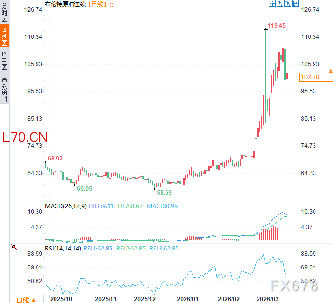 (布伦特原油连续日线图,来源:易汇通)