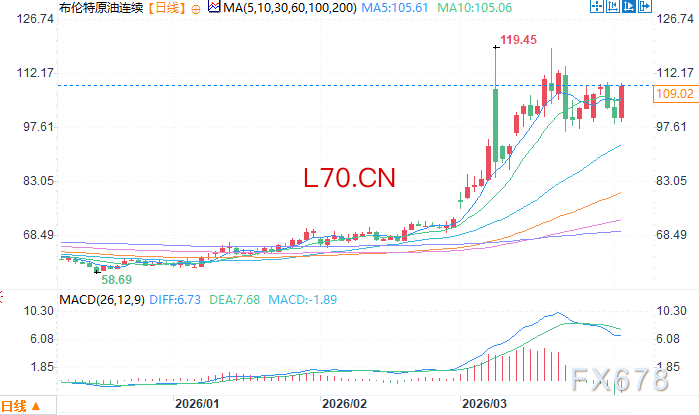 布伦特原油连续日线图 来源:易汇通4月2日 布伦特原油连续 收报 109.02 美元/桶