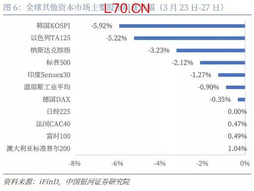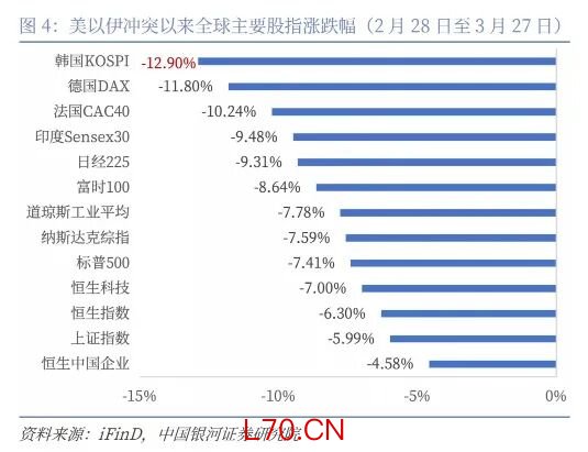 此前资本市场已经定价“通胀”,本周开始初步定价“衰退”。如果战争不能在4月份展现稳定的结果,“衰退”将正式被计入价格。投资者认为美、伊双方均以战争升级来“降级战争”,鉴于5月份美国总统需要国会授权继续军事行动,6月份要开启中期选举路演,4月份更为关键。4月上旬若战争形势未明显缓和,全球资本市场、非美汇率市场、商品市场仍然承压,预计4月下旬形势将有所好转。