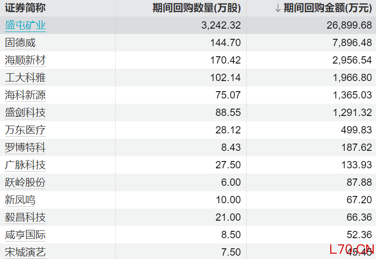 16家上市公司股票获回购投资配资平台,盛屯矿业回购金额最高