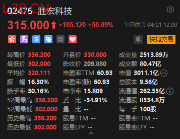 今日胜宏科技上市,首日涨超50%。公开发售阶段胜宏科技获431.15倍认购,公开发售的发售股份最终数目为785.28万股股份,占发售股份总数的约8.19%。合共接获约250606份有效申请,受理申请数目约57137份,申购一手获配发股份占所申请股份总数的概约百分比为0.71%。