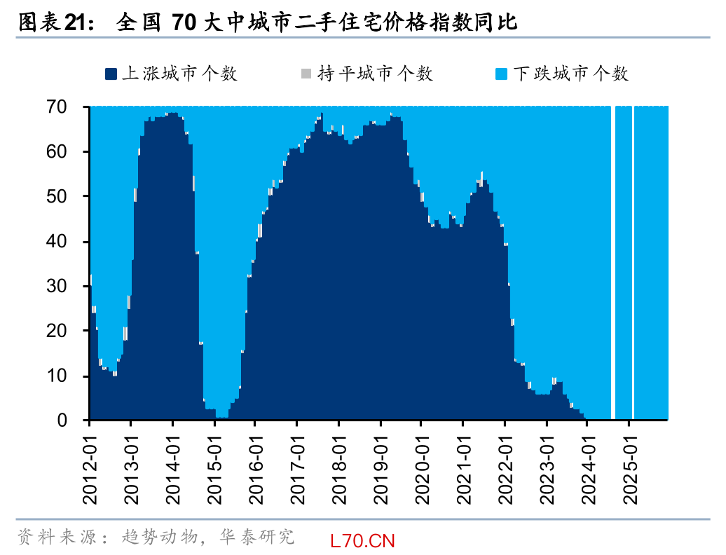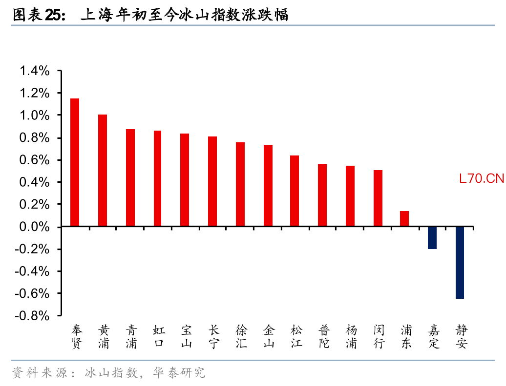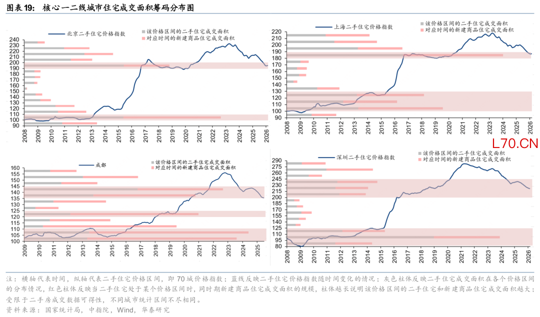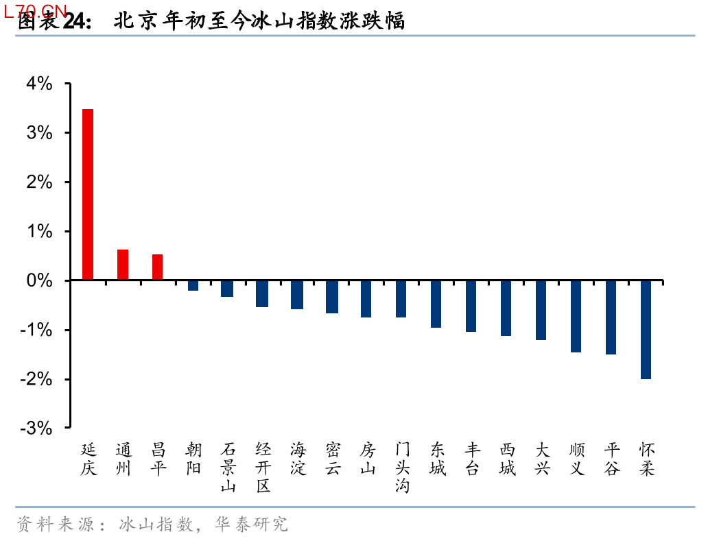 除了城市分化,城市内部其实也在分化。虽然去年以来重点城市房价整体仍在下跌,但其中部分区域也出现了独立走势。今年至今,我们观察到北京、上海、成都等城市的部分区域出现了止跌迹象,且共同点在于普遍位于城市的非核心片区,如北京延庆、通州、昌平等;上海的奉贤、青浦、宝山等区;成都的金堂、简阳、新津等。这些非核心区在2025年往往是跌幅最大的片区,今年如果企稳或者跌幅收窄,对于市场预期改善也有意义。