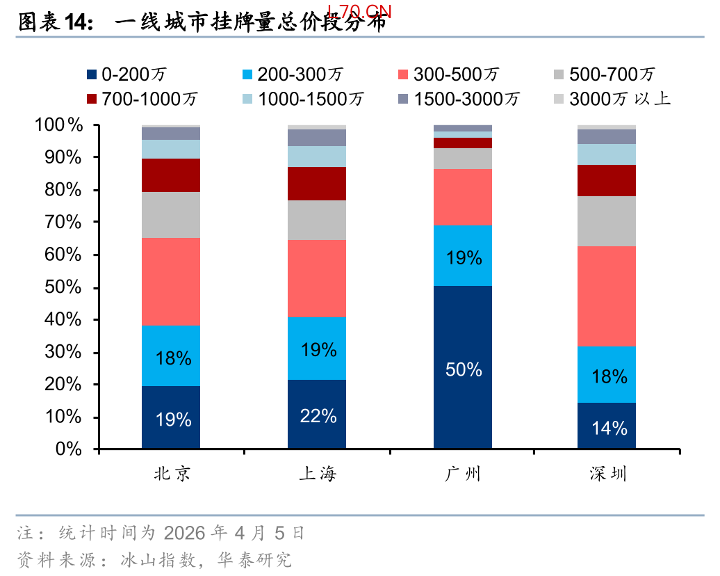 2025年重点城市的房价下跌背后有部分原因在于置换链条的衰竭,尤其是刚需至改善的需求断层。而今年“小阳春”低总价房屋的高占比充分体现了刚需正在积极入市,但仅仅刚需入市不足以支撑市场持续回暖,尤其是无法向新房传导。因此我们后续还需要观察二季度更高价格段的房屋成交占比是否能重新修复,来驱动二手房和新房成交量更健康地回升。