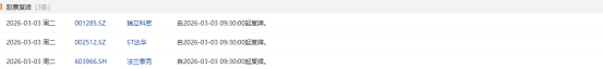 3月3日盘前停复牌汇总